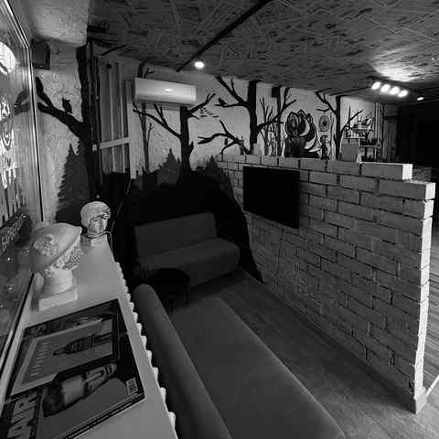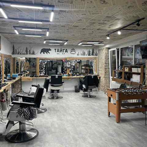 Барбершоп Taiga (Тайга) предлагает клиентам подходящую атмосферу не только для преображения, но и для отдыха: бесплатный Wi-Fi, кофе, чай, прохладительные напитки и PlayStation 5 в зоне ожидания. Интерьер с четкими линиями, темными оттенками, деревом и кирпичной кладкой помогает подчеркнуть мужской характер пространства.